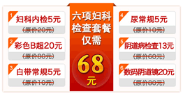 目前,我院正在开展活动,活动期间,医院特将一套260元的妇科检查改为68元,此活动仅限网络预约前30名,如有任何疑问,请点击 >>查看活动详情