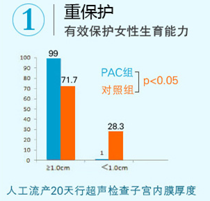 PAC能有效促进子宫内膜早期修复,减少宫颈粘连的发生,术后20天即可恢复到1.0cm以上。