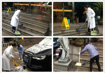 为了方便广大患者顺利就医,一大早,杭州红房子妇产医院的义务扫雪活动就开始了。活动中,医院的医护人员不畏严寒,挥舞着铁锹和扫帚对门前、主要通道上的积雪和结冰进行清扫,大家齐心协力,配合默契,形成了这个冬季里最美的风景线!
